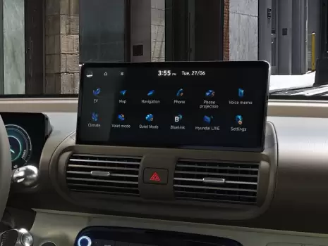 INSTER este echipat cu Bluelink Connected Car Services - oferind conectivitate fara intreruperi prin intermediul aplicatiei pentru smartphone sau al ecranului tactil - cu recunoastere vocală online și o gama larga de functii pentru a iti face calatoria mai usoara si mai placuta.
