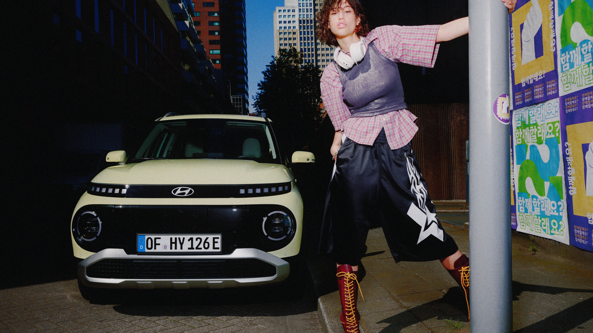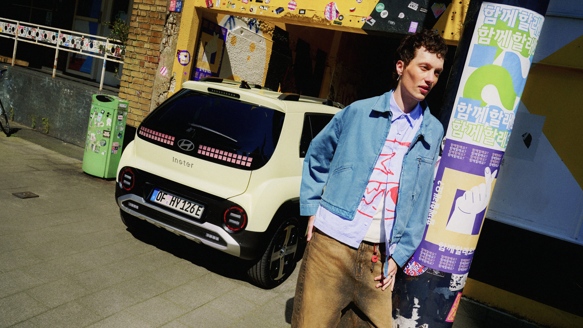 Personalitatea lui INSTER straluceste prin luminile de zi LED rotunde si a graficii pixelate a indicatoarelor de directie. Partea frontala robusta este evidentiata de un spoiler in stil placa de circuit neagra.