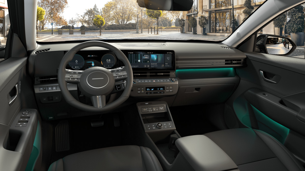 Procesul de dezvoltare a noului KONA a demarat cu varianta EV, o abordare neconventionala in ceea ce priveste designul, care reflecta strategia accelerata de electrificare abordata de Hyundai. Arhitectura inspirata de EV include o configuratie sportiva, cu o consola mobila, care evidentiaza eleganta interiorului.
