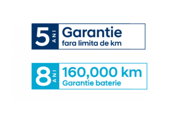 KONA electric dispune de pachetul Hyundai de 5 ani garantie fara limita de kilometri, alaturi de garantia extinsa de 8 ani sau 160.000 de km pentru bateria litiu-ion polimer.