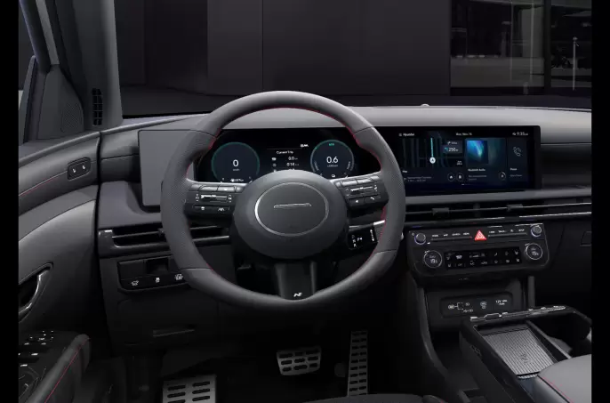 Elementele de design specifice gamei N se regasesc pe volan, pe schimbatorul de viteze imbracat in piele sau pe capacul modulului shift-by-wire, in functie de varianta de transmisie selectata.
